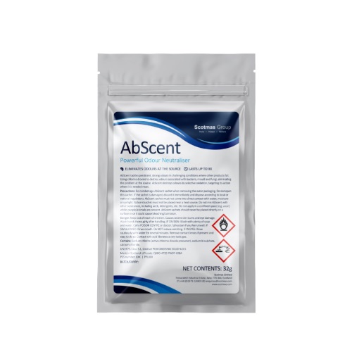AbScent removes odours without the use of masking agents or perfumes. Instead it penetrates porous surfaces by “selective oxidisation”, meaning the neutraliser is targeted where it is needed most. The self-activating sachets react with the humidity in the air to release a sustained and controlled amount of Chlorine Dioxide. After being released, the ClO2 safely reduces into common salts.